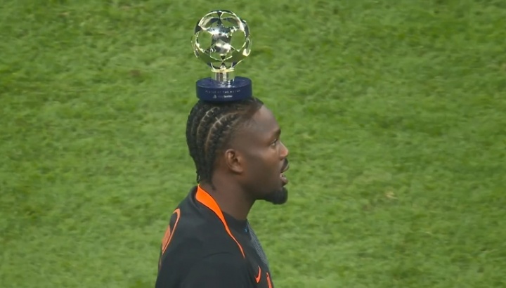 可爱捏,图拉姆当选全场最佳,将奖杯放在头顶