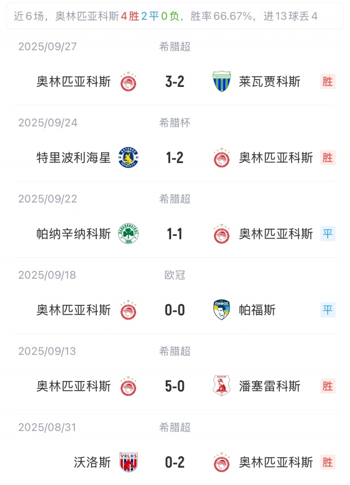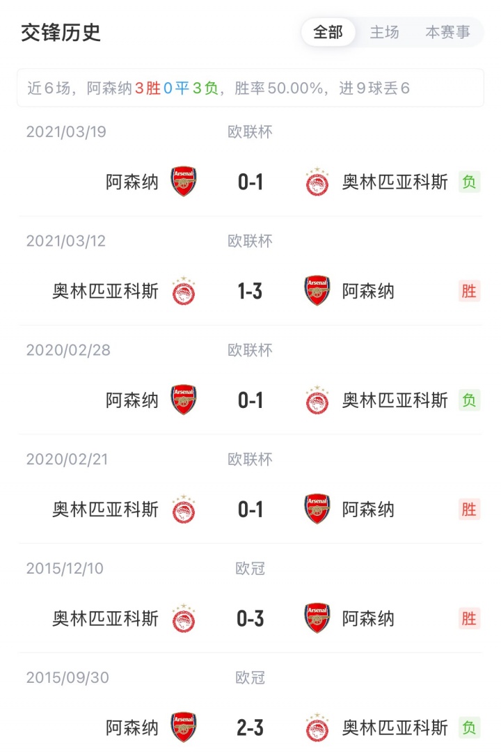 阿森纳首轮2-0客胜毕尔巴鄂,免费英超360高清直播奥林匹亚科斯0-0战平帕福斯。阿森纳与奥林匹亚科斯此前在欧战共交手12次,打成6胜6负。两队上一次交手是2020/21赛季欧联杯1/8总决赛 ,阿森纳两局 3-1、0-1出局 对手。