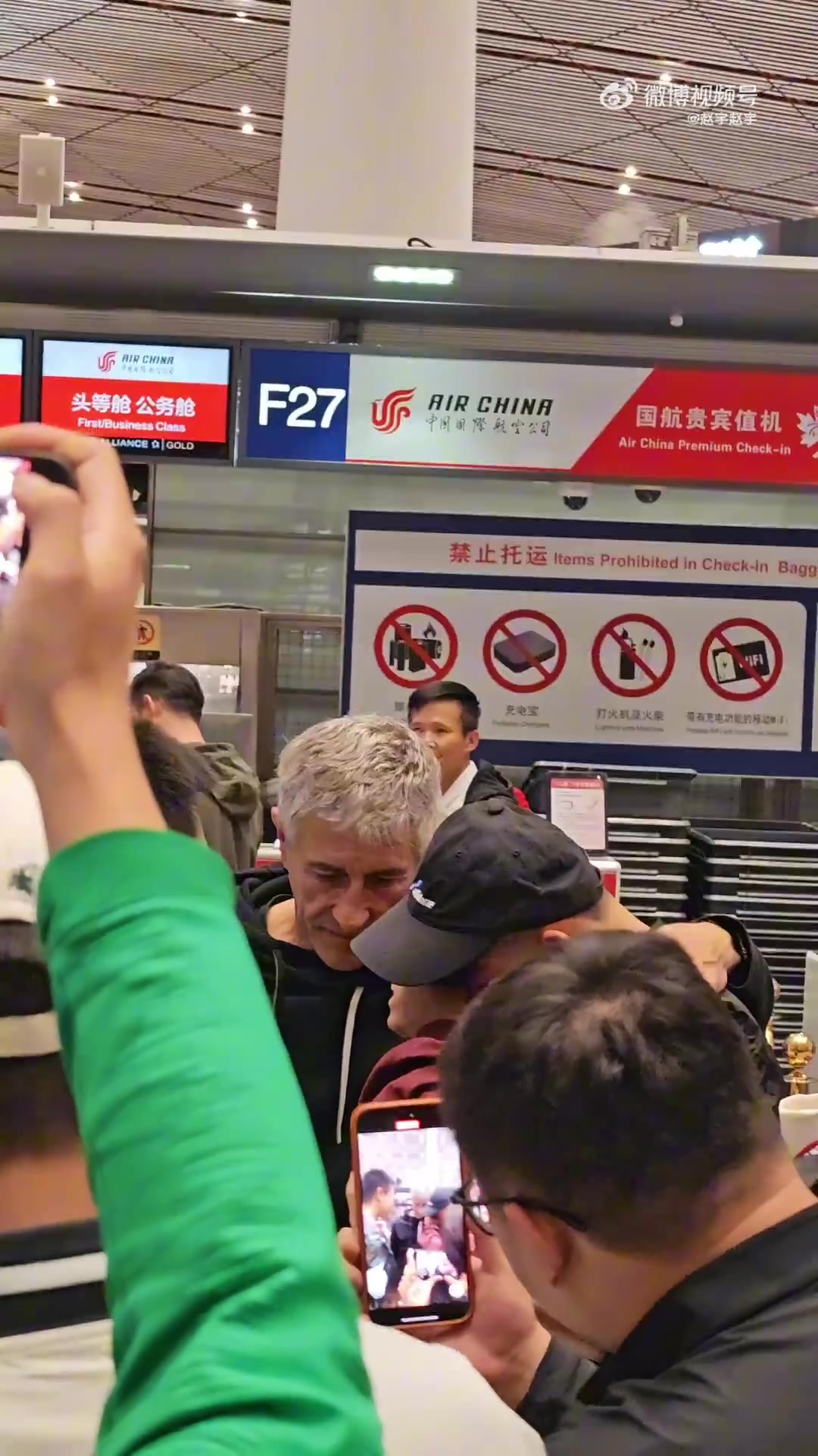 记者:部分国安球迷前往机场为塞蒂恩送行,张源含泪送别