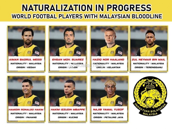 今日趣图:马来西亚接下来该归化梅西C罗哈兰德姆巴佩了