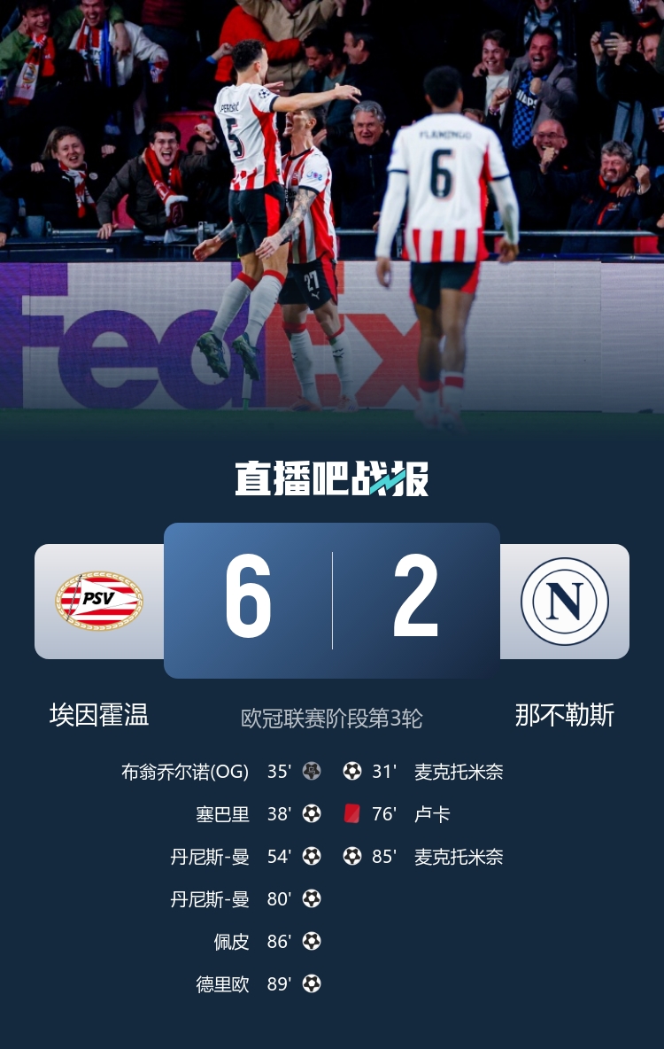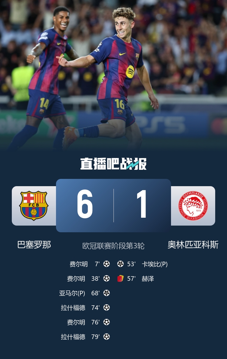 欧冠第3轮第一赛事 日9场赛事 全部结束,这9场赛事 一共轰进43球(场均4.8球),英超直播其中有三支球队单场轰出6+得分 (巴萨6-1奥林匹亚科斯、巴黎7-2勒沃库森、埃因霍温6-2那不勒斯)。