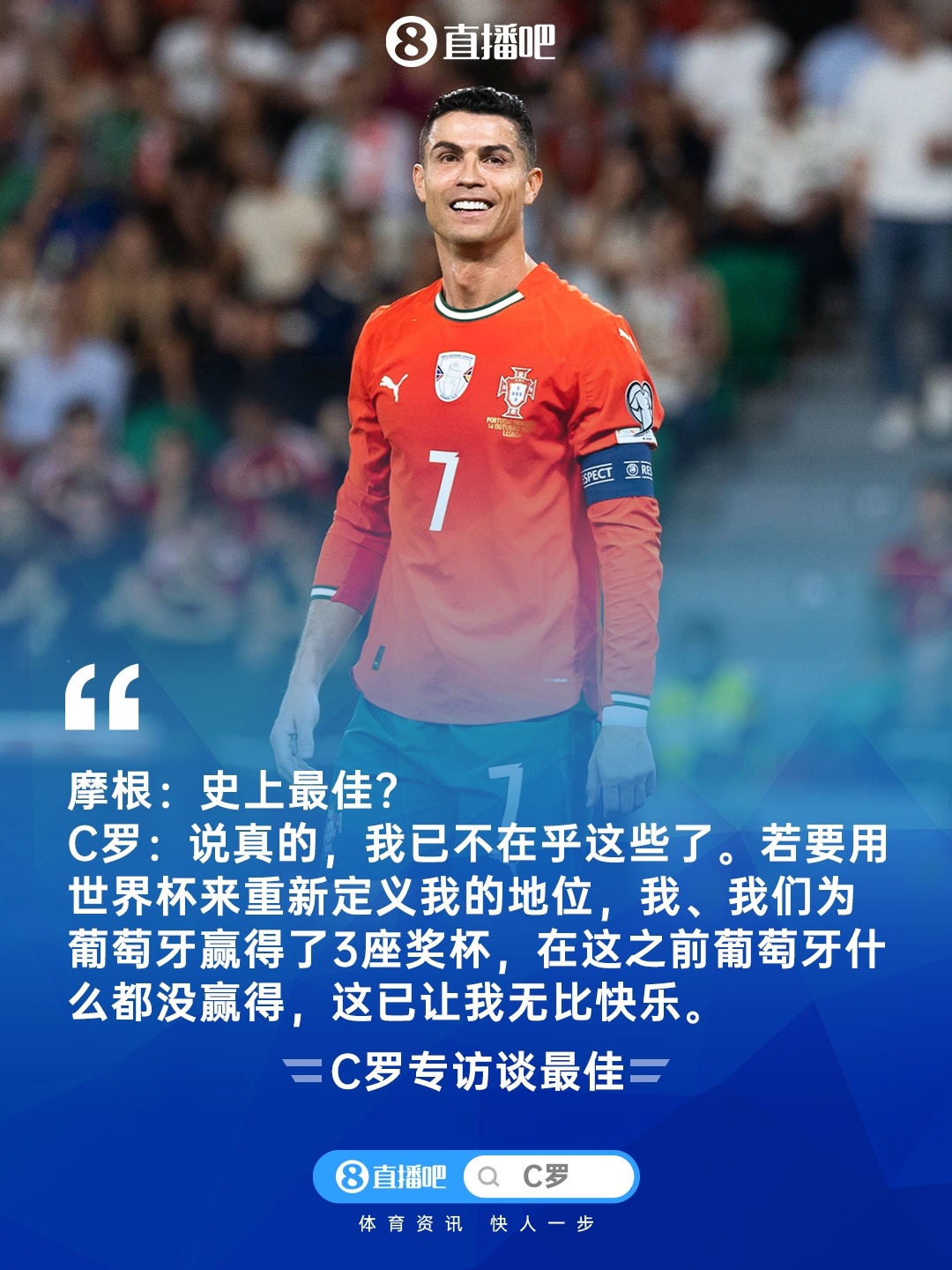 就像有人喜欢我金发,有人偏爱黑发,这都很正常。但若要用世界杯赛 来重新定义我的地位,我、我们为葡萄牙赢得了3座奖杯,在这之前葡萄牙什么都没赢得,这已让我无比快乐。