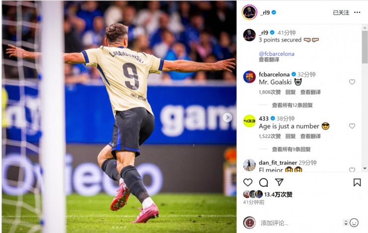 莱万社媒晒出自己庆祝得分 的照片,178足球直播官网配文:三分到手🤜🏻🤛🏻