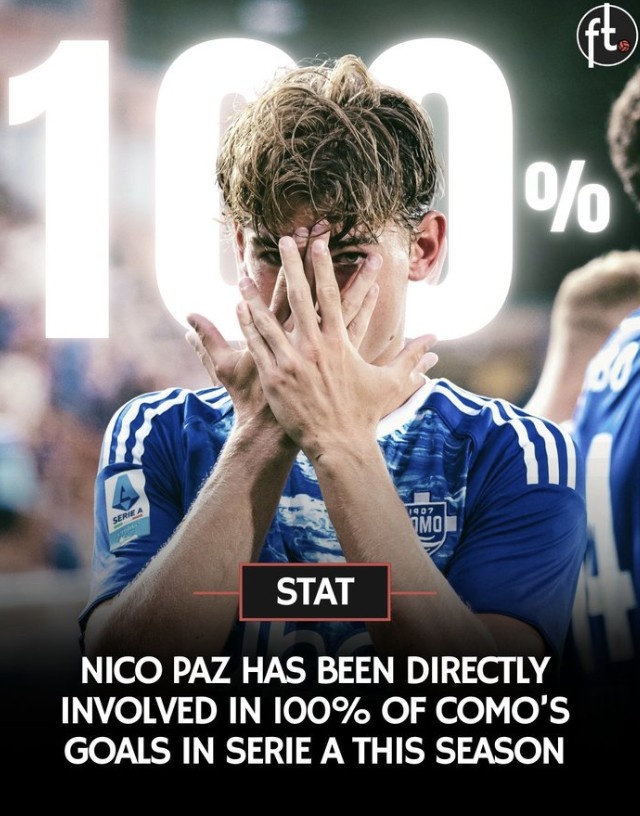 💯5轮3球3助功 !尼科-帕斯加入 了科莫本赛季意甲的全部得分