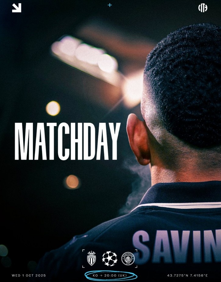 曼城官推晒海报预热对阵摩纳哥,萨维尼奥单人出镜