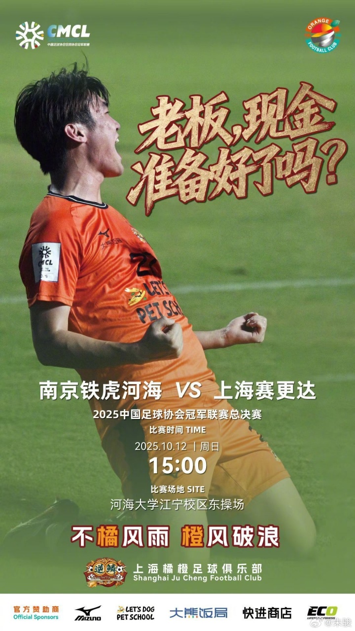 10月12日讯 中冠总决赛 阶段分组赛第7轮,上海橘橙客场应战 1-0战胜南京铁虎,获得A组第一,晋级下一轮 2026中乙职业联赛 。