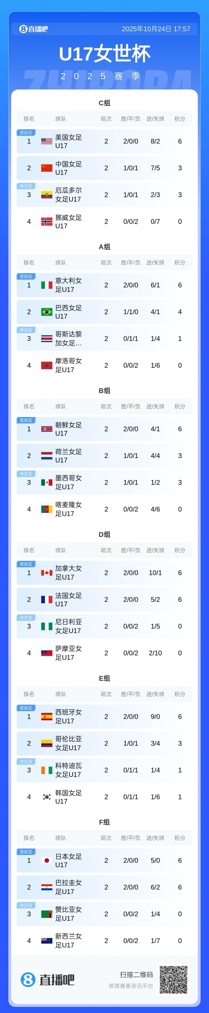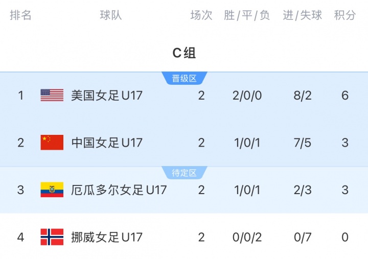 赛前小组积分榜,免费看英超的软件中国女足U17以3分暂列小组第二,今晚她们若赢球或打平均可锁定小组前二出线。
