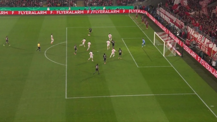 德国记录 第一名 此番获得幸运眷顾:路易斯-迪亚斯(28岁)扳平比分的得分 处于明显越位违例 位置,本应被判无效。但由于视频回放系统尚未在德国杯第二轮启用,主裁判 托比亚斯-维尔茨做出了错误的得分 有效判决 ——拜仁由此获益。
