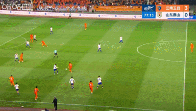 03月21日讯 中超第3轮,云南玉昆vs山东泰山,赛事 第78分钟,泰山快攻前场3v3,克雷桑横传,卡扎伊什维利后点铲射打飞。
