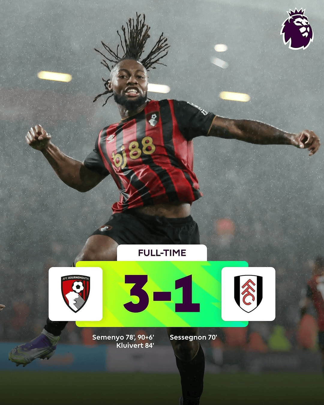 英超积分榜: 枪手反超红军居首, 伯恩茅斯进前4, 曼联进前10
