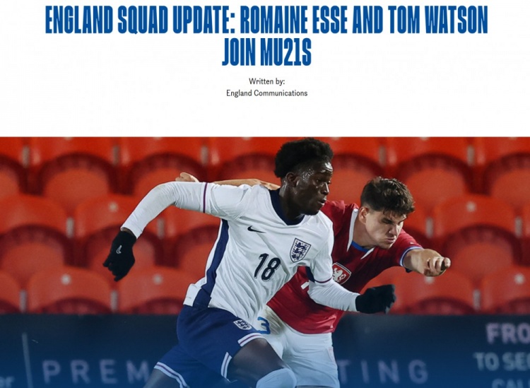 官方:英格兰U21补招埃塞、汤姆-沃特森,麦利因伤退赛