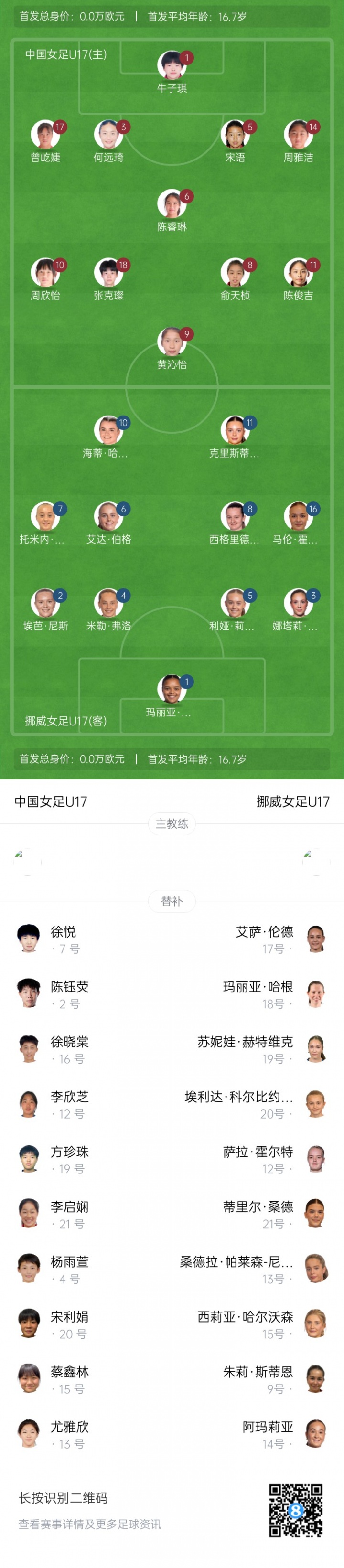 10月18日讯 北京时间今晚21点,2025年国际足联U17女足世界杯赛 小组赛C组首场赛事 ,中国U17女足将迎战挪威U17女足。赛前双方公布了杆位名单。