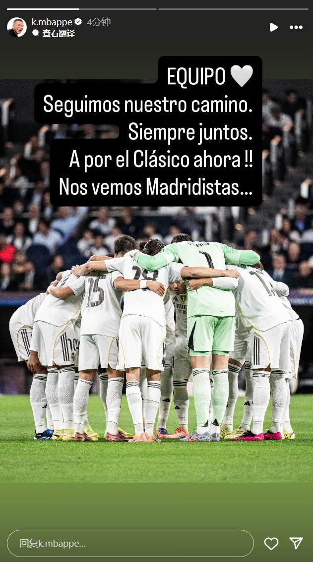姆巴佩社媒晒照:我们始终团结一致,国家德比继续助威 !