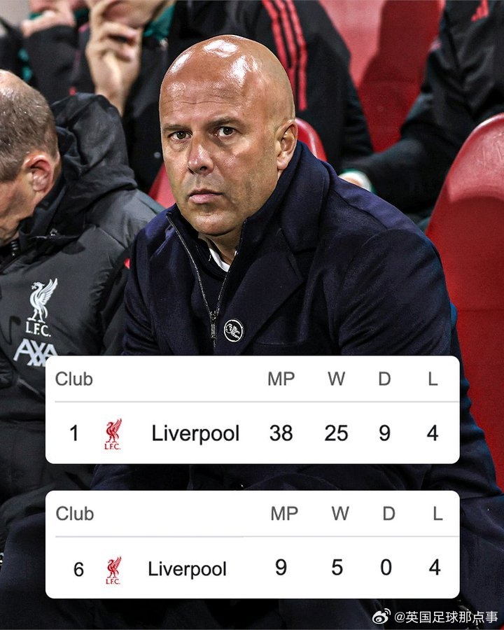 【竞技状态 暴跌】利物浦已经输了4场英超 与上赛季整个赛季一样多👀