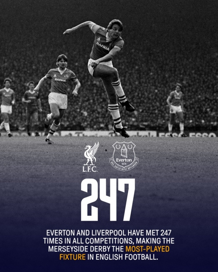 老对手!利物浦和埃弗顿交手247次,是英格兰足坛交手最多的球队