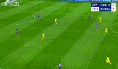 第45+3分钟,天津津门虎左路攻势,传中球被碰了一下来到后点,阿代米直接抽射破门!天津津门虎1-0领跑 深圳新鹏城↓