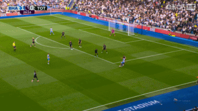 加时补赛3分钟。上半场赛事 结束,布莱顿2-1热刺。