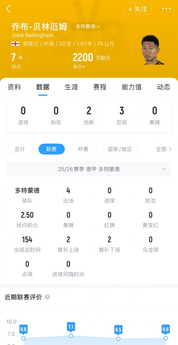 还需适应!20岁小贝林3050万加盟多特,6场0球0助+连续3场后备