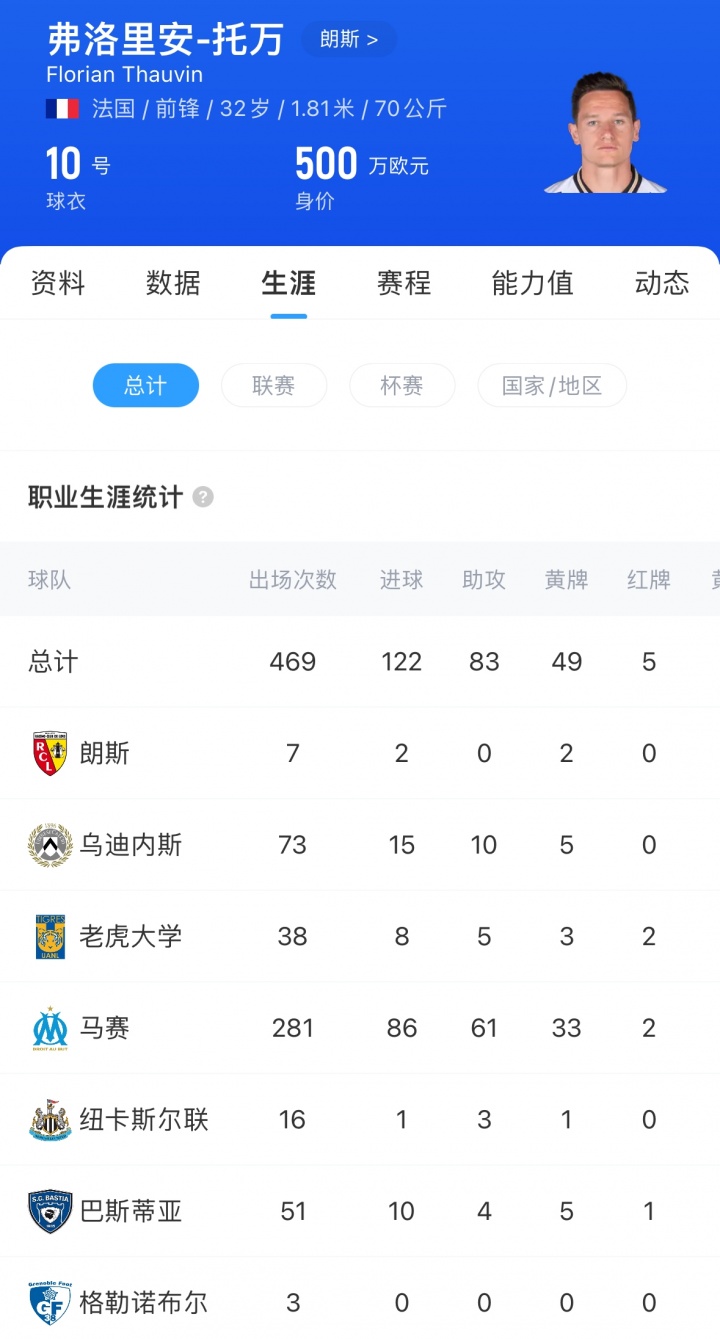 托万本次因巴尔科拉负伤 而被补招入队,32岁的他目前效力于法甲朗斯,新赛季出场7次打入2球。