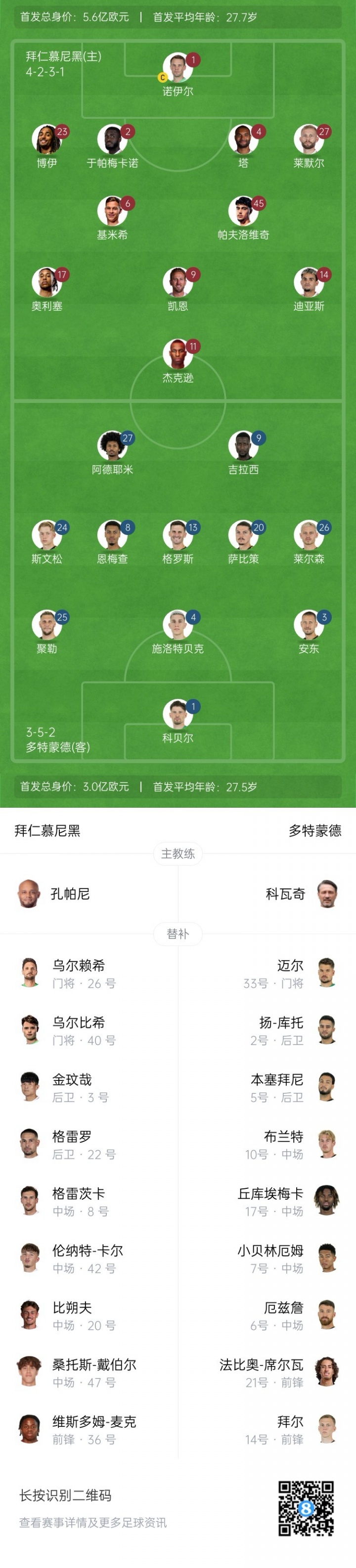拜仁vs多特杆位:凯恩、杰克逊先发,阿德耶米、吉拉西出战