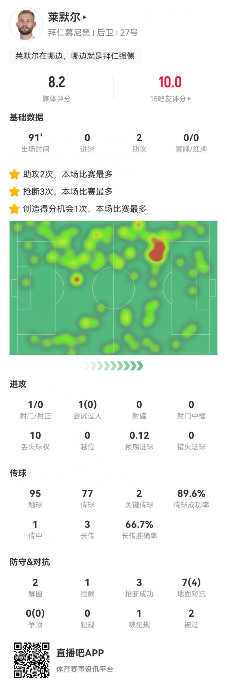 10月23日讯 拜仁在本轮欧冠4-0击败布鲁日,英超比赛在线观看无插件莱默尔本场数据如下: