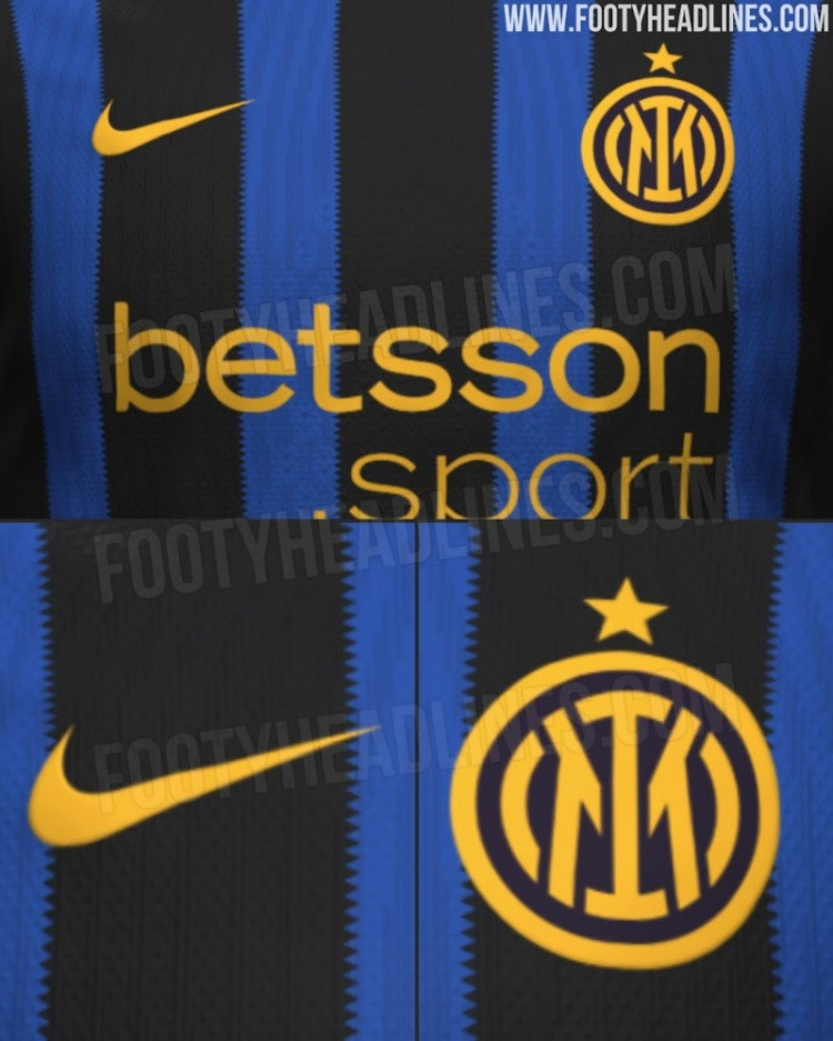 外媒透露下赛季国米主场作战 运动活动 服 设计: 蓝黑条纹+锯齿, 金黄色队标