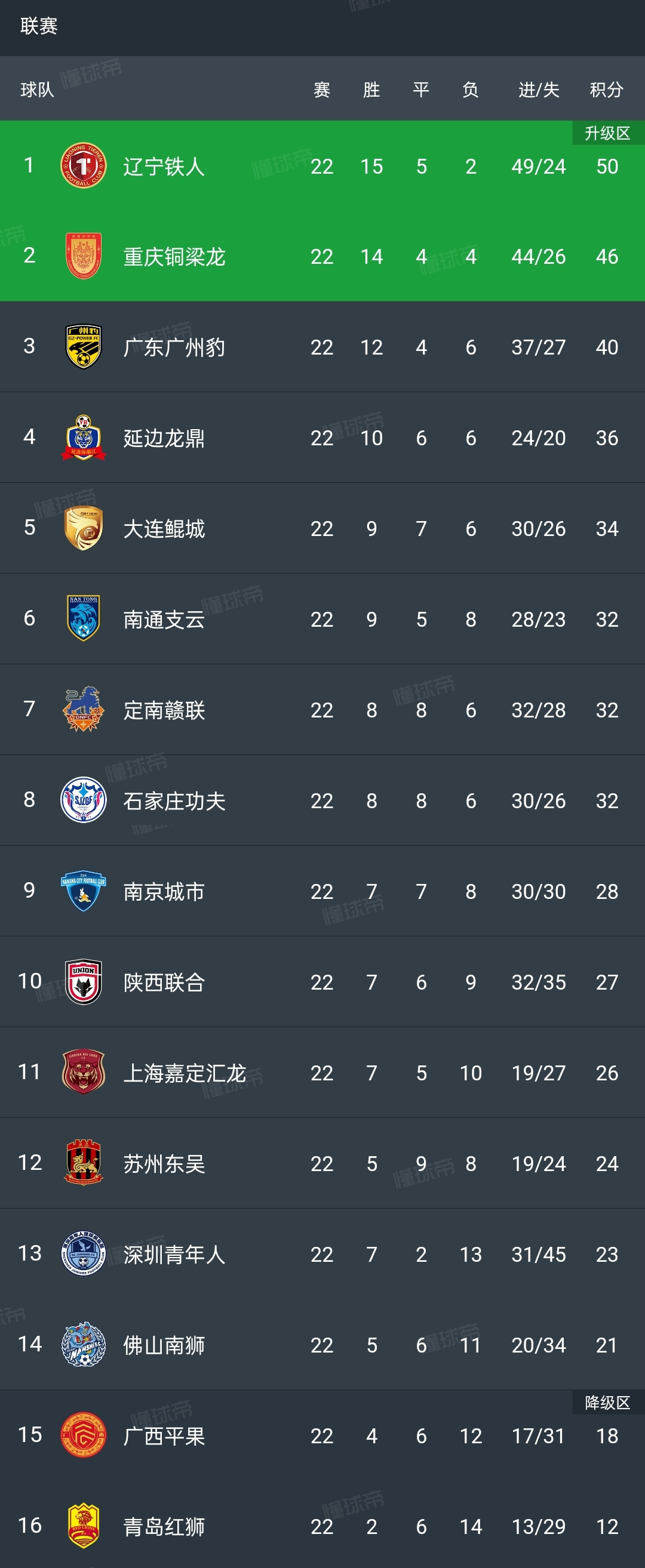 中甲职业联赛 结束了三场赛事 足球比分-即时比分,三场赛事 也只打进了7个球,并不是特别的出色 ,但是结果非常劲爆,重庆铜梁龙本可以借辽宁铁人输球的机会,从而缩小与领头羊的差距,万万没想到,重庆铜梁龙也在客场应战 爆出了冷门,1-3输给了定南赣联,无缘缩小与领头羊的分差。南通支云主场作战 2-0击败苏州东吴,赛事 一度中断,叶道驰最后时刻完成连进两球,致胜球 赛事 。佛山南狮凭借游耀兴第五分钟的得分 ,客场应战 1-0击败青岛红狮,逃出降级区。中甲职业联赛 也很热闹呀,至此第22轮全部结束,中甲最新积分榜出炉。