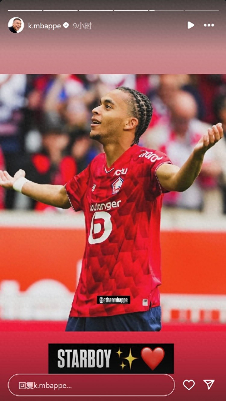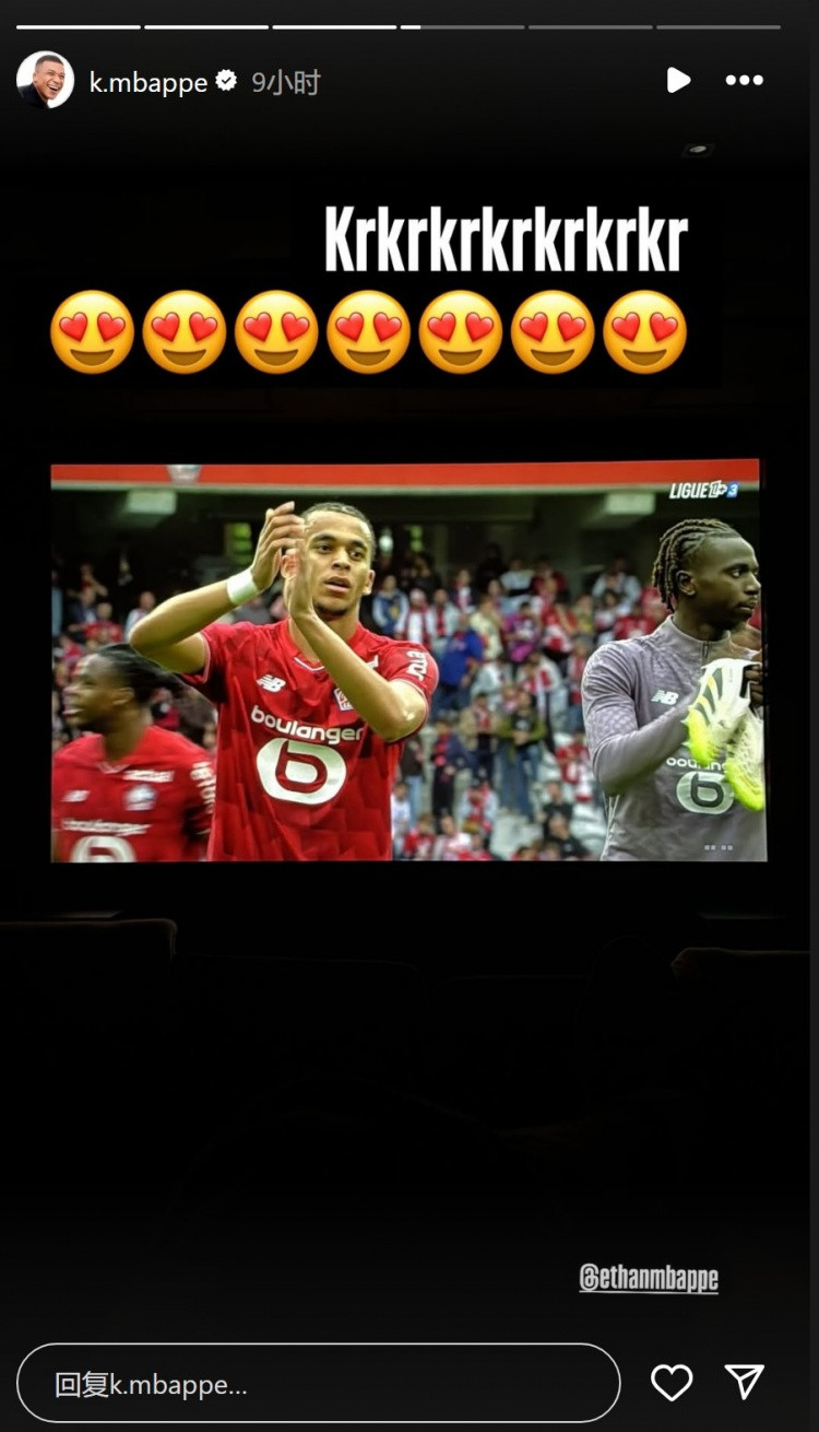 这也是伊桑-姆巴佩职业生涯的处子球,英超 视频直播姆巴佩社媒晒出伊桑-姆巴佩的照片,对弟弟表示祝贺,配文:“新星!”