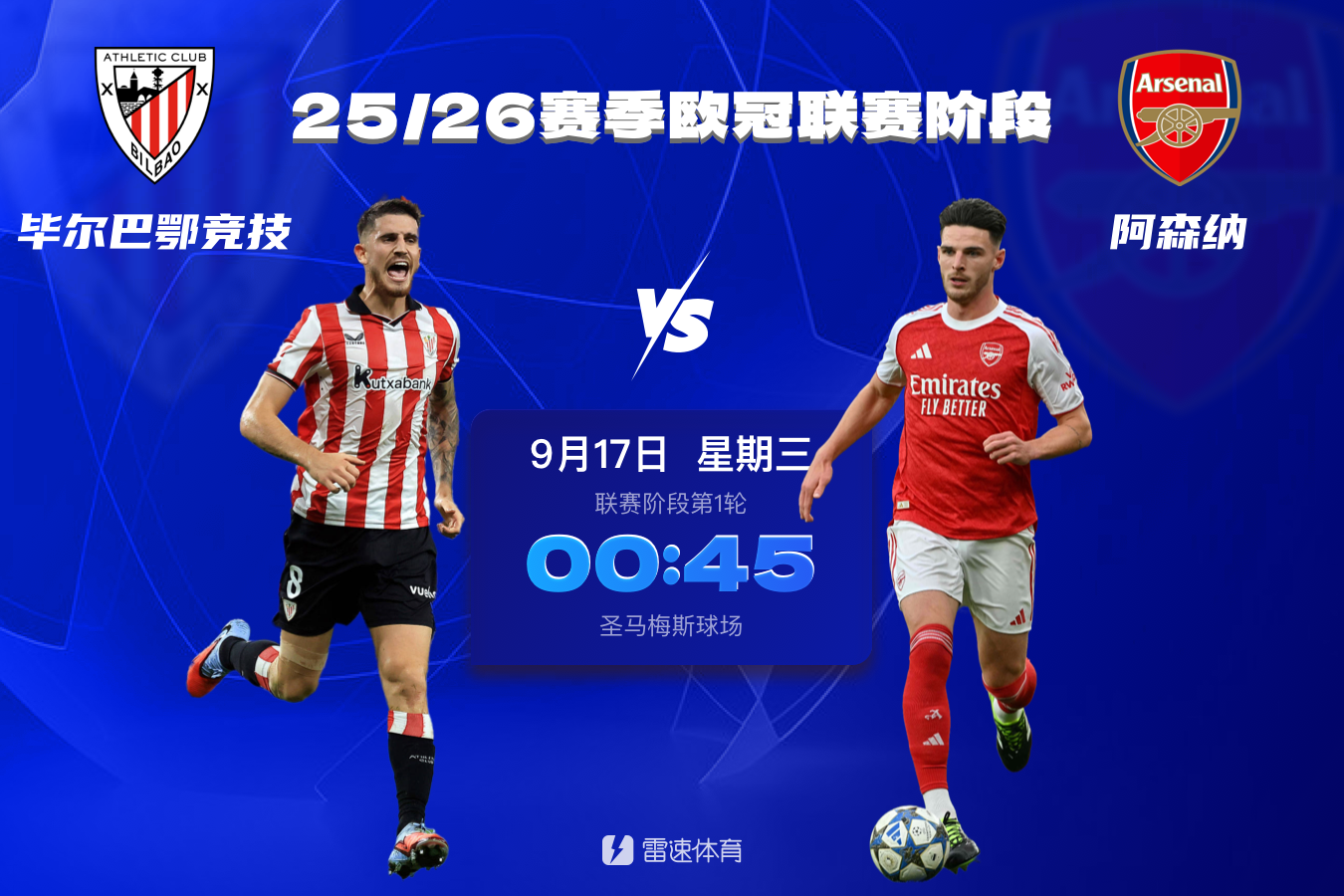 9月17日 0:45 毕尔巴鄂竞赛 vs阿森纳