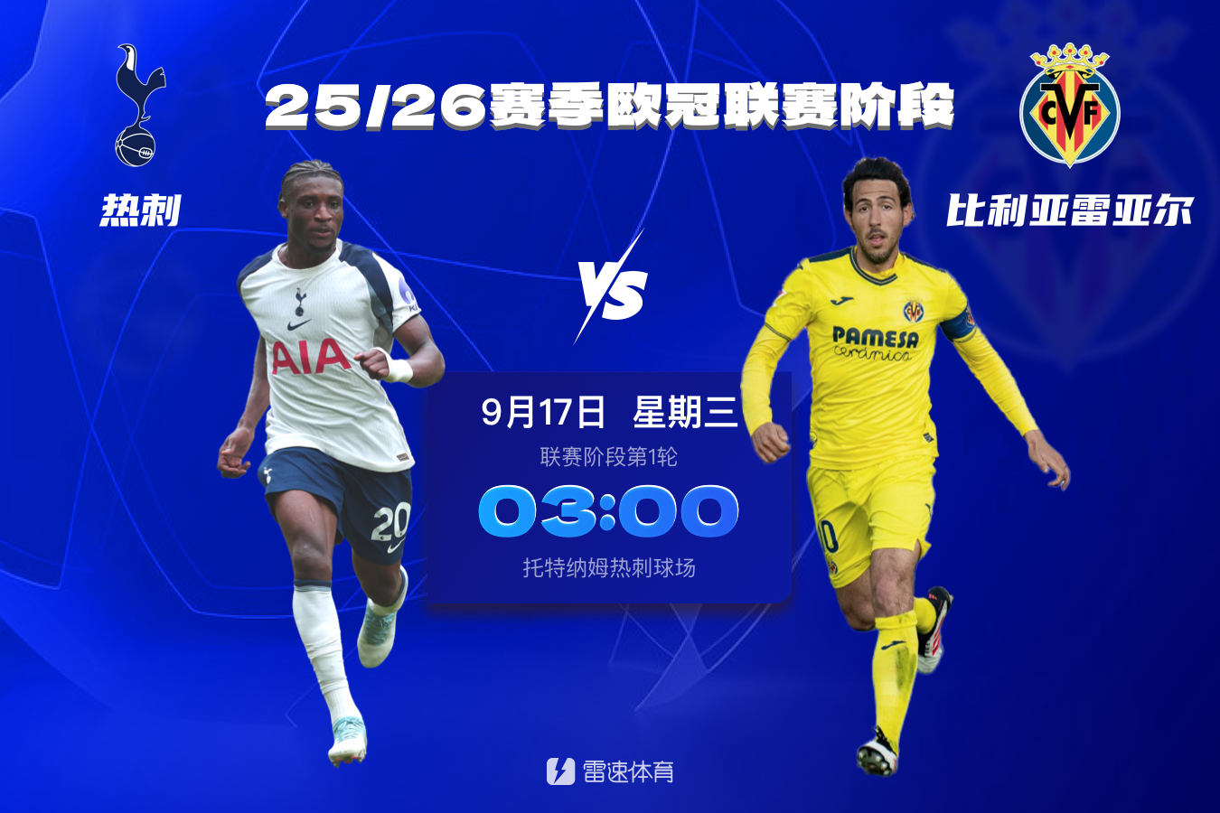 9月17日 3:00 热刺vs比利亚雷亚尔