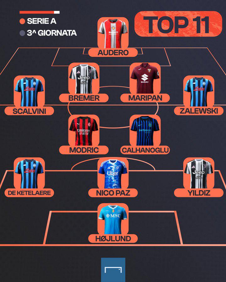 前场:德凯特拉雷(亚特兰大)、尼科·帕斯(科莫)、伊尔迪兹(尤文图斯);