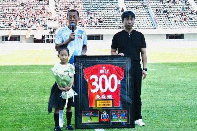 赛事 还未开始,延吉市大众 健身运动练习 中心运动场 就呈现出一片欢乐的氛围。老将金泰延刚刚还在赛前练习 中奋力快跑 ,一会儿便身着白蓝黄相间的练习 服,走到绿茵场中央。原来,本轮是金泰延职业赛的第300场赛事 ,延边龙鼎古代足球 俱乐部专门为他举行职业生涯300场纪念仪式。