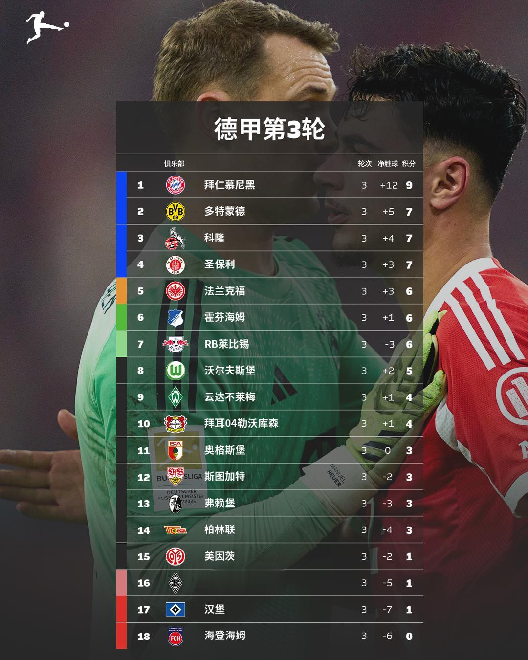 德甲第3轮综述|半场4球!南北德比还是熟悉的味道!南大王全胜领跑v站足球,多特两连胜排名第二,药厂赢得首胜