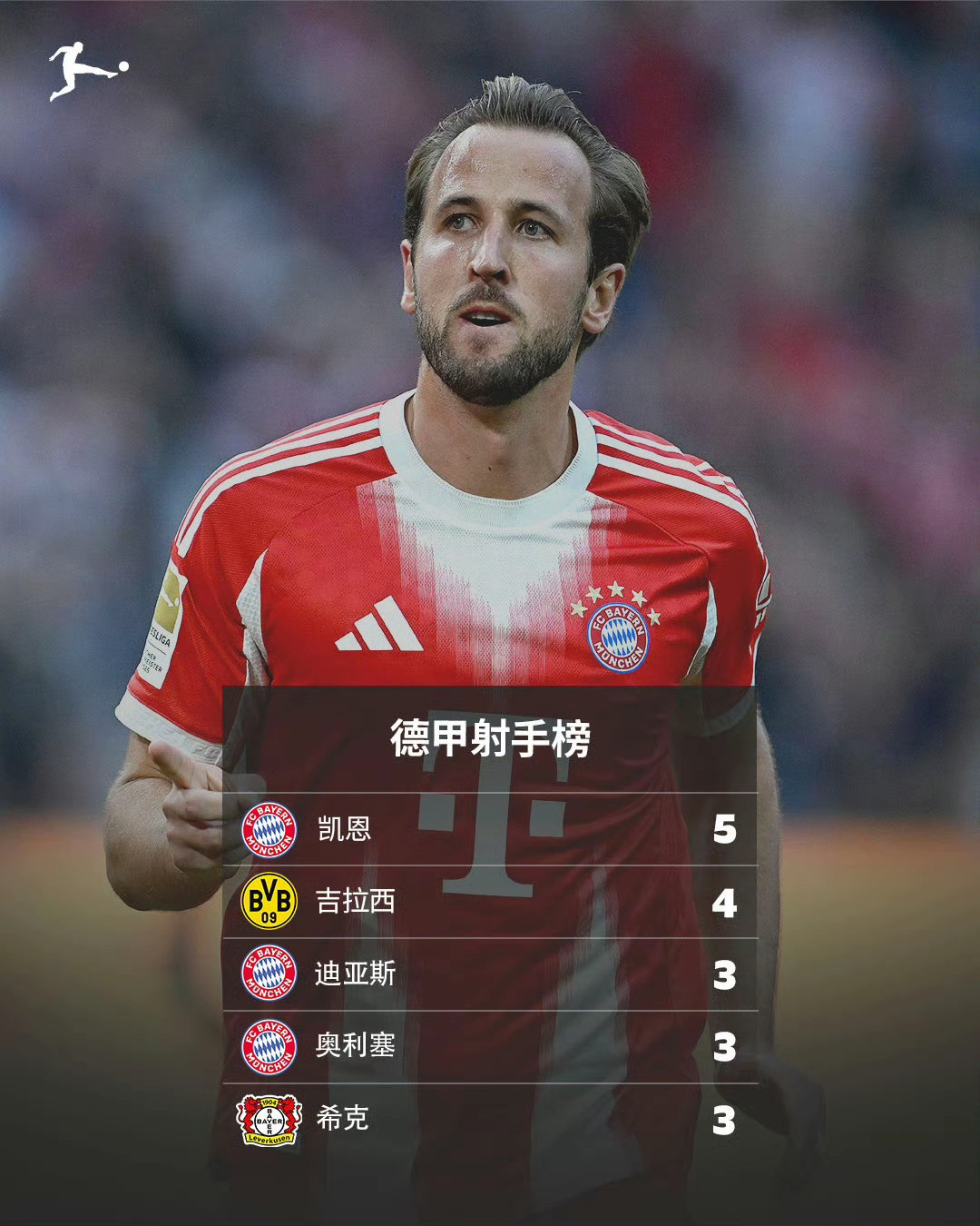 德甲积分榜+射手榜