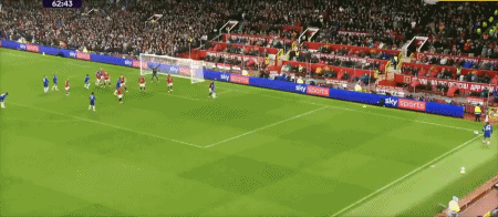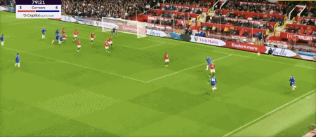 第83分钟,里斯-詹姆斯后场错误 ,B费带到危险区域 前右脚远射,被约根森扑出。