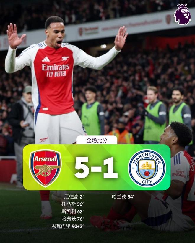 1-0!5-1!阿森纳扬眉吐气,被欺负到完胜,再战曼城,214亿对决