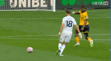 6分钟后,施塔赫定位球轰出世界波直接破门,利兹联2-1反超狼队