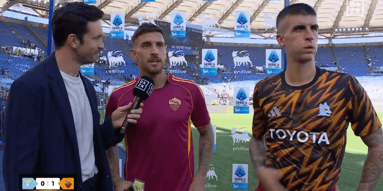 虎扑09月21日讯意甲第四轮,罗马1-0战胜拉齐奥,本场赛事 的制胜英雄佩莱格里尼在赛后接受DAZN采访时并没有掩饰他的喜悦,他敞开心扉,讲述了他激动人心的庆祝。