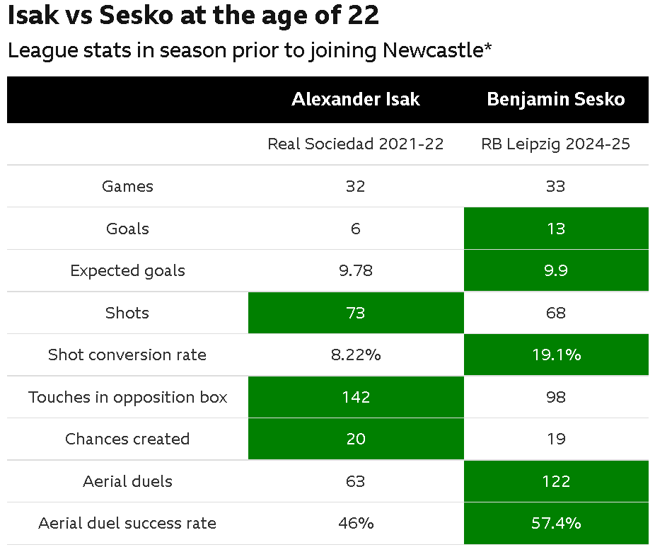 谢什科已经和英格兰古代足球 联系在一起很多年了,今夏阿森纳考虑过他,后来曼联与纽卡斯尔联又展开了抢人大战,切尔西一度也与之有过传闻。这是因为谢什科高大、健壮 、速度快而且顶球不错,有一个优秀终结者的潜质。他被比作埃尔林·哈兰德,并不仅因为他们都为萨尔茨堡红牛踢过球。