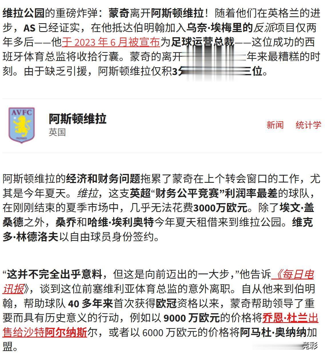与前年英超结束庆祝打入欧冠后的场面相比,现在蒙奇也是一筹莫展,也能离开,维拉士气低迷,接下来还是困难的局面。