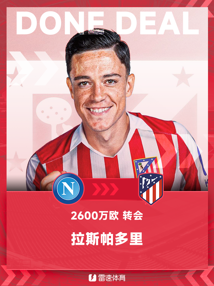 官方:马竞正式签下那不勒斯前场球员拉斯帕多里,据悉转会费2600万欧元