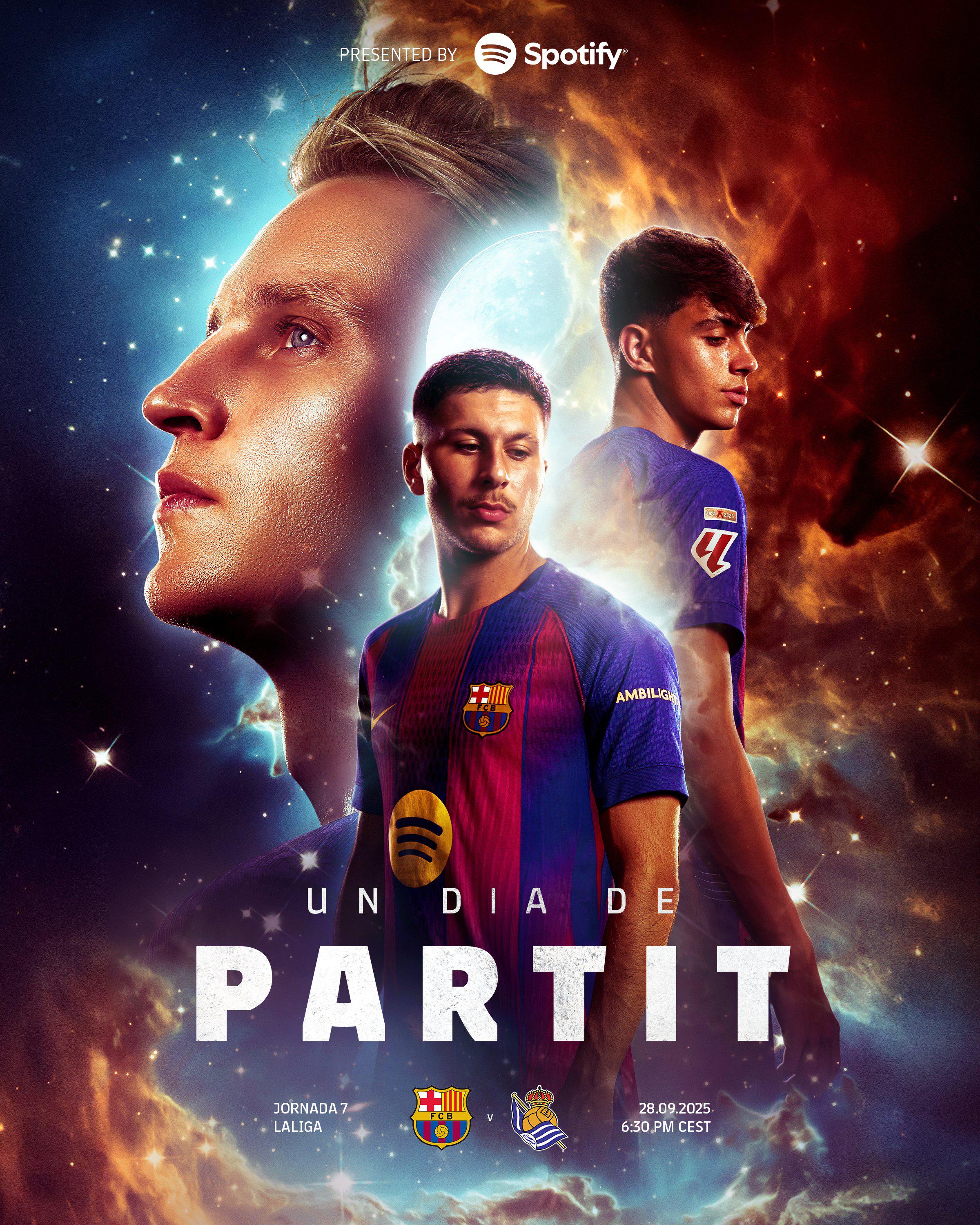 赢了就登顶!巴萨发布对阵皇家社会海报,德容等球员出镜
