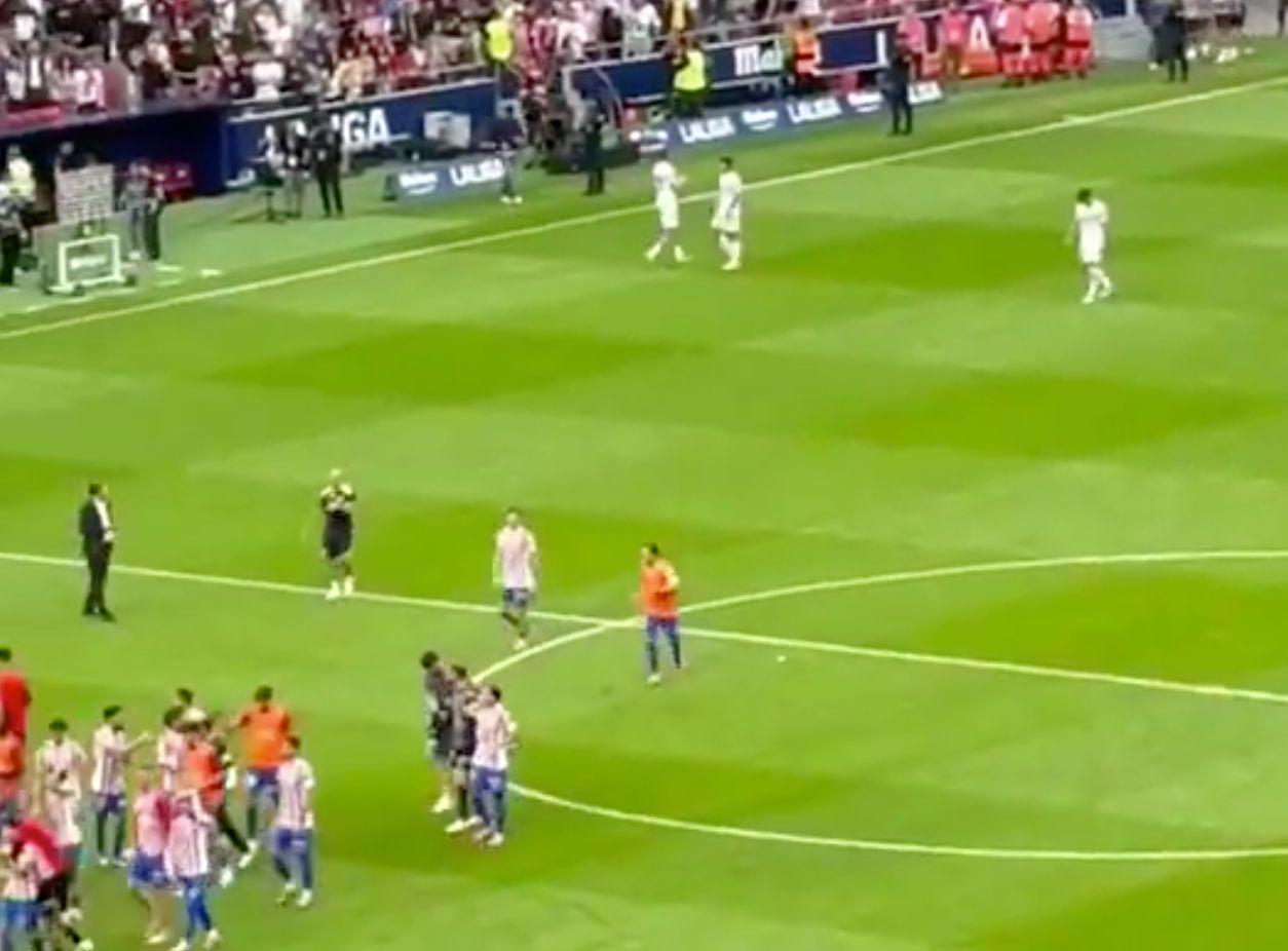 现场的视频显示,皇马最后只有3名球员留下来谢场,他们分别是阿森西奥、贡萨洛以及赫伊森。在西甲积分榜上,皇马仍2分领跑。不过,只要巴萨本轮赢球,皇马就得交出头把交椅。