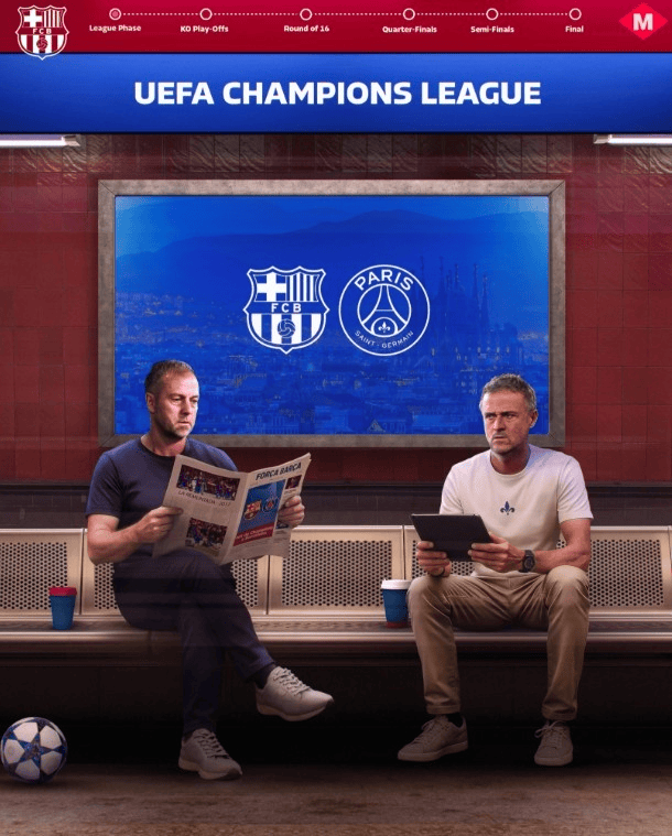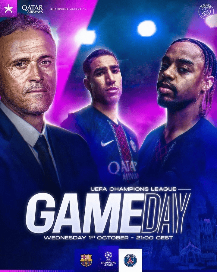 巴萨、巴黎官方发布赛事预热海报, 主队历史战绩6胜4平5负