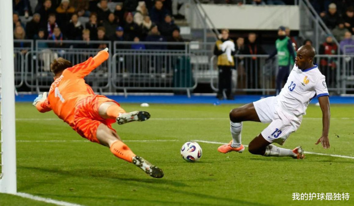 第63分钟,法国终于扳平比分:迪涅左路长传,恩昆库利用个人能力内切抽射送入远角,1-1!