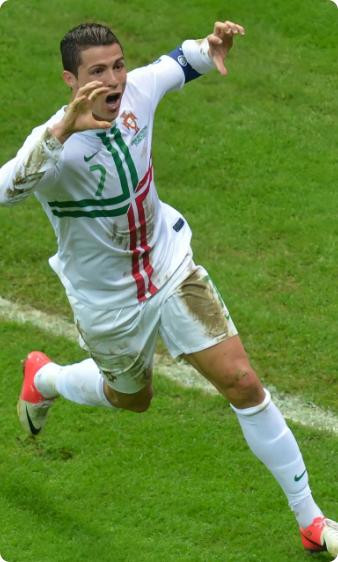 在准总决赛 面对强大的荷兰队时,C 罗首开记录 ,用一记出色 的顶球敲开了荷兰队的大门。