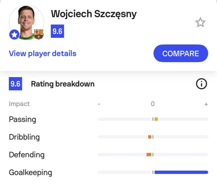 •自2017年12月以来,国家德比中巴塞罗那球员的最高Sofascore评分(9.6分)